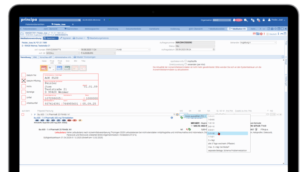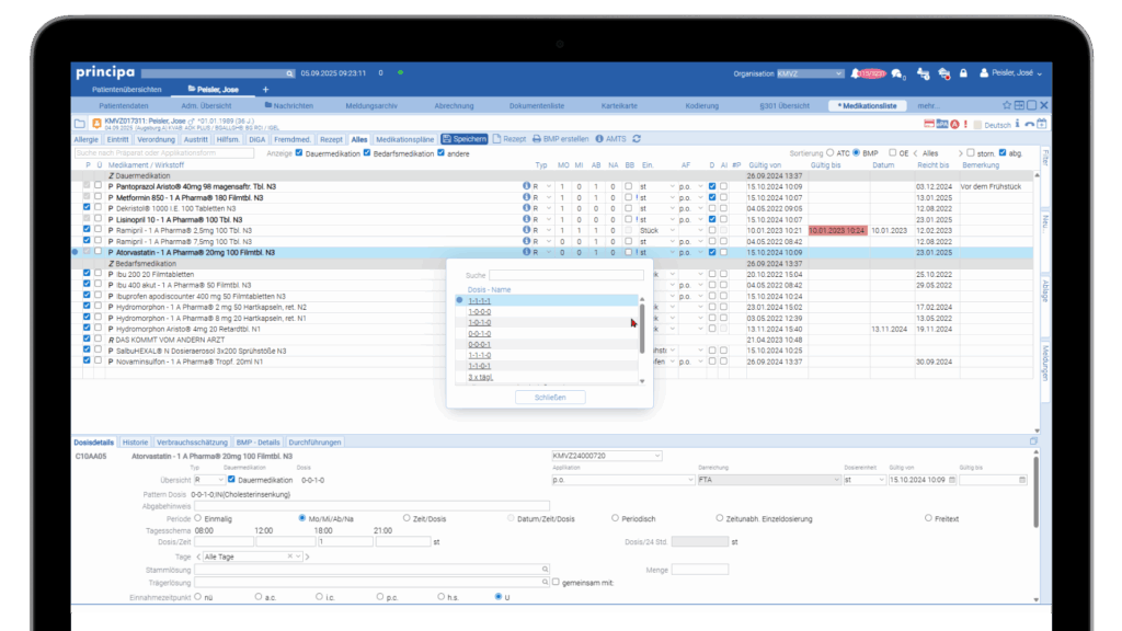 Im Praxisalltag kommt es oft auf Sekunden an. Ärztinnen und Ärzte stellen Rezepte aus, geben Standarddosierungen ein und wiederholen häufig dieselben Schritte bei der Verordnung von Medikamenten. Diese wiederkehrenden Tätigkeiten kosten Zeit und bergen zudem die Gefahr von Eingabefehlern. Jede unnötige Eingabe summiert sich zu einem spürbaren Zeitverlust. Die Dosis-Schnellauswahl in principa sorgt in genau diesen Situationen für eine deutliche Entlastung.